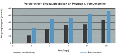 RenoScreed®schwindet um ca. 26 % weniger und trocknet um ca. 85 % schneller